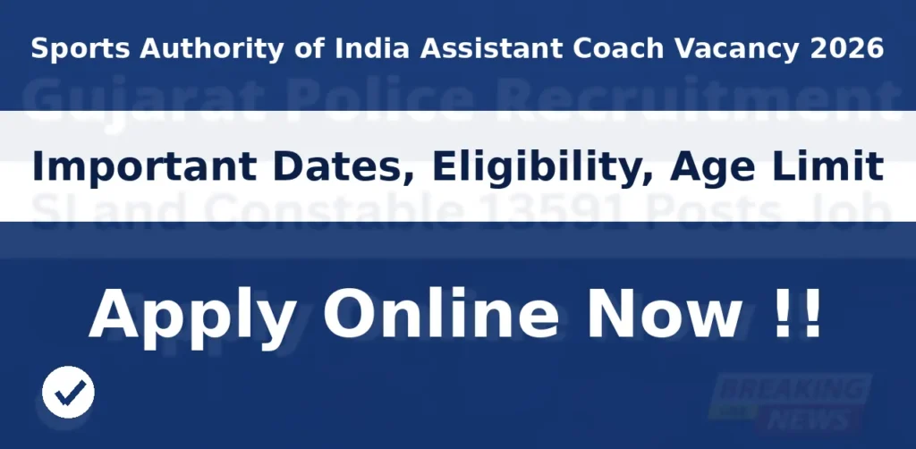 इस लेख में आपको SAI Assistant Coach Bharti 2026 से जुड़ी सभी जरूरी जानकारी जैसे Important Dates, Eligibility, Age Limit, Application Fee, Discipline-wise Vacancy, Selection Process, Exam Pattern, Salary, Apply Online Process और FAQs विस्तार से दी जा रही है।
